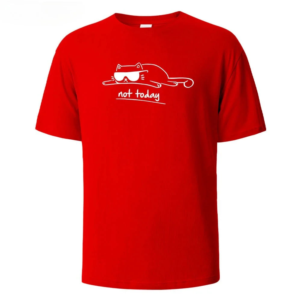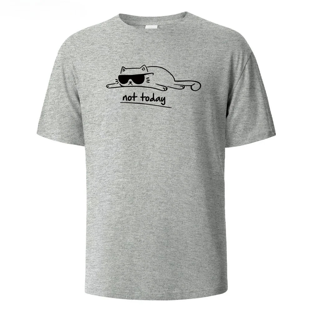 Not Today Cat Printed Comfortable Cotton Tshirt Men Simple Crew Neck Design Soft Breathable Short Sleeve Basic Men's T-shirt Top